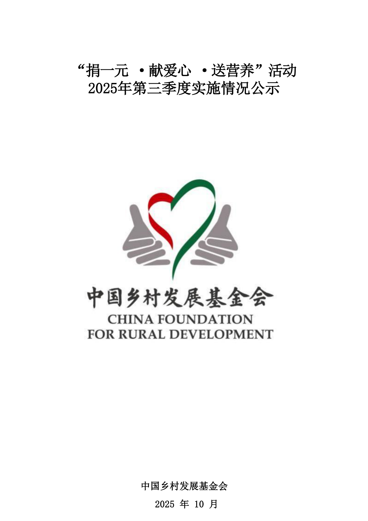 捐一元·献爱心·送营养活动2025年第三季度报告