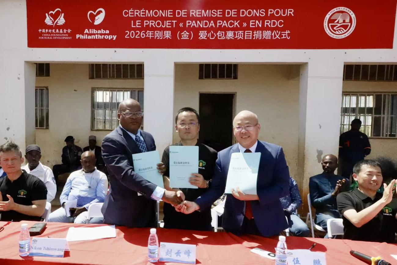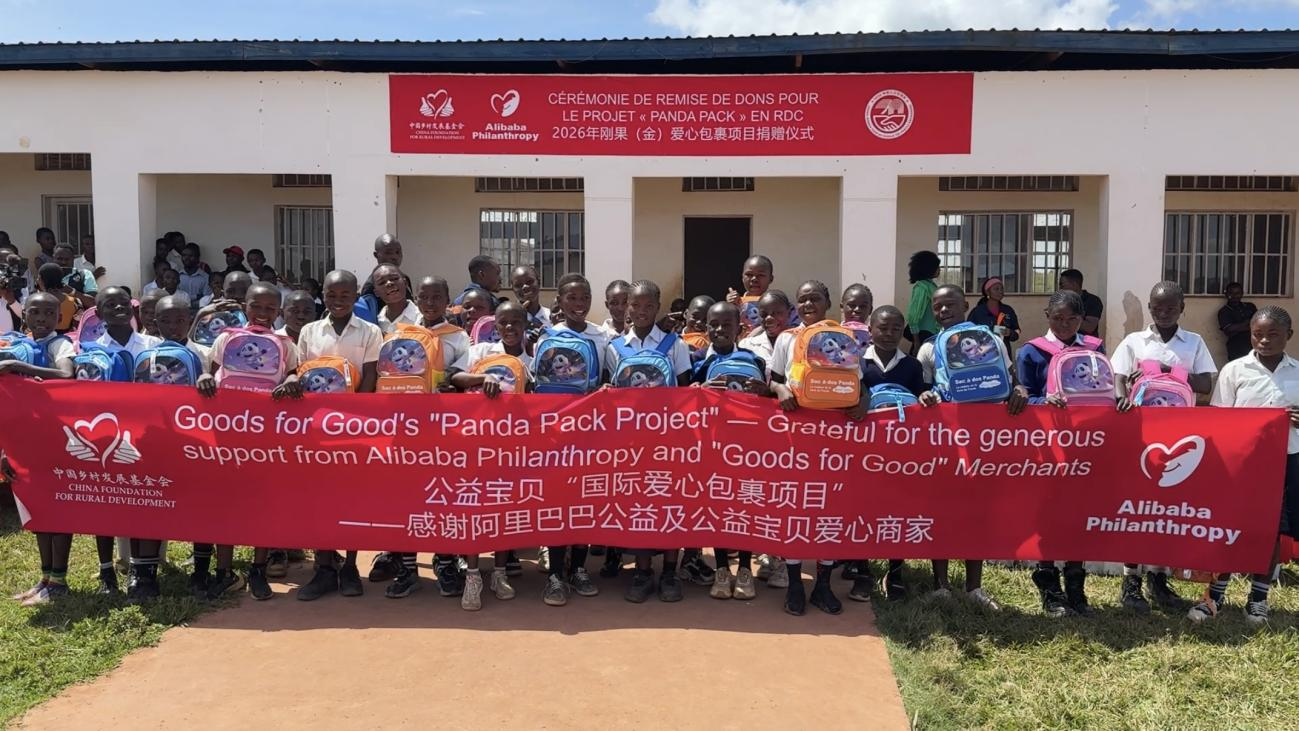 4月17日,由中国乡村发展基金会和阿里巴巴公益共同发起的“国际爱心包裹”项目在刚果(金)卢阿拉巴省庞比村卡卢班巴小学成功举行发放仪式。这标志着2026年“中非人文交流年”精品活动中非惠民生系列项目之一的国际爱心包裹项目首次在刚果(金)落地实施,首批1250套承载着中国人民深情厚谊的国际爱心包裹跨越山海,送达当地学生手中。